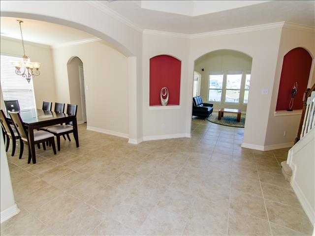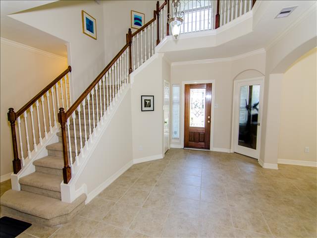 Extensive Tile Floors Stainless Appliances Lots of Windows 2 Inch Blinds Leaded Glass Door to study Granite Counter Tops Spindled Stair Case High Ceilings Game Room Media Room wired for Surround Sound