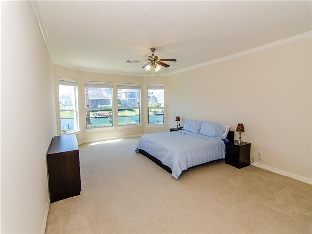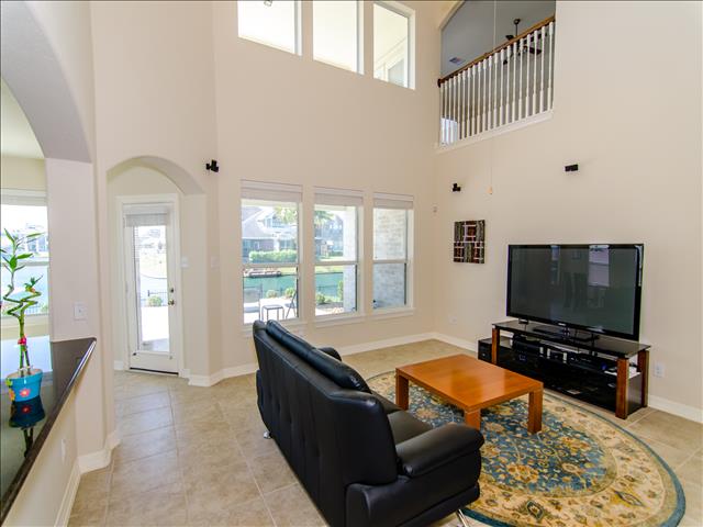 Stunning Water Front Home in Sydney Harbour with a Dramatic 2 Story Living. Beveled Full glass front door. Extensive tiled floors.  Granite counter tops.  Gas cooktop, Open floor plan. Stainless appliances.  Huge Gameroom that leads to balcony with awesome water and fountain views. Home sits on the widest part of the water way. 25x15 Extended Patio. Media Room with a closet/bed 5. 3 large bedrooms upstairs w/ walk in closets. Study down. Large soaking tub. Oversized dock. Sprinkler system.