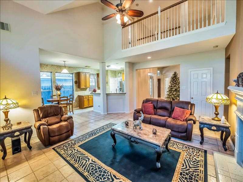Amazing 2 Story Family Home in Copperfield Village.  4 bedrooms + 3 full baths + study + game/media Room + guest bedroom downstairs. Nestled amongst the trees on a *cul-de-sac street*.  A few steps from the neighborhood pool and park area. Pride of ownership shows throughout this HOME. Open Kitchen with lots of cabinets. Recent Stainless Steel Appliances, Gas Stove and Silestone counters. Breakfast room with lots of windows.  Extensive tile floors with Rich laminate wood flooring in study, dining and *guest bedroom downstairs.* New Frieze' carpet master and upstairs.  Dramatic 2 story windows in the den with stone surround fireplace with electric start fireplace. HUGE Game Room /media Room or could be bedroom 5 with surround sound.  *Large screened in porch.* Glass security storm doors on front and back. Home sits on a deep lot. Lushly landscaped front and back yard. WOW! This home even has walk in storage.