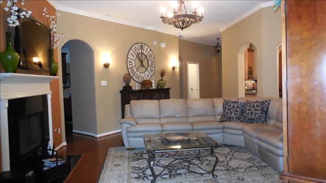 Fabulous updated home. Rich Pecan wood floors. Slate floors in wet areas. Viking appliances. Black wrought iron lighting. Spacious den with corner fireplace w/ black galaxy granite tile surround. Kitchen granite counters, Oak cabinetry w/ black dental molding. Lushly landscaped front and backyard. Water view of fountain from patio. Back and front covered patio. Walk across the street to the park and walking trails.