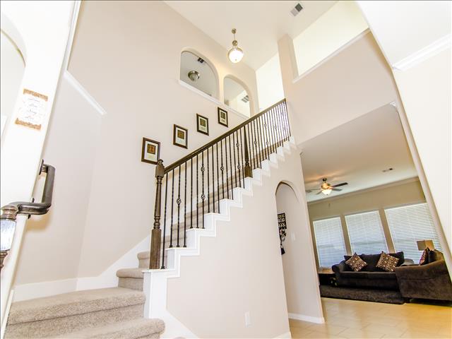Split bedrooms, Huge Game Room + Media Room + Homework Nook or could be 5 bedrooms, Walk in floored attic space. Lots of Windows. Corner Fireplace, Dining and Study with wood floors. Extensive tile flooring.