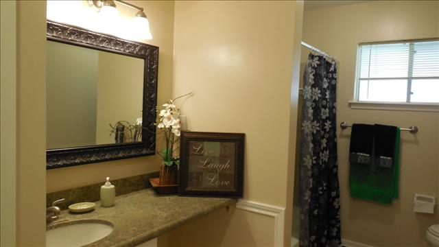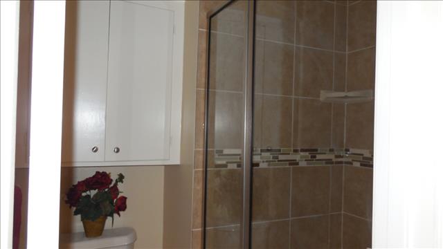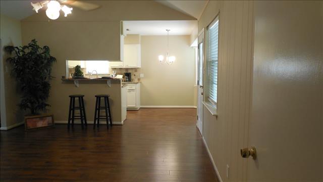 Rich Walnut laminate flooring throughout the home. Samsung Stainless Appliances Granite Countertops New Light Fixtures Accent paint color Vaulted Ceilings Shower with mosaic tile insert